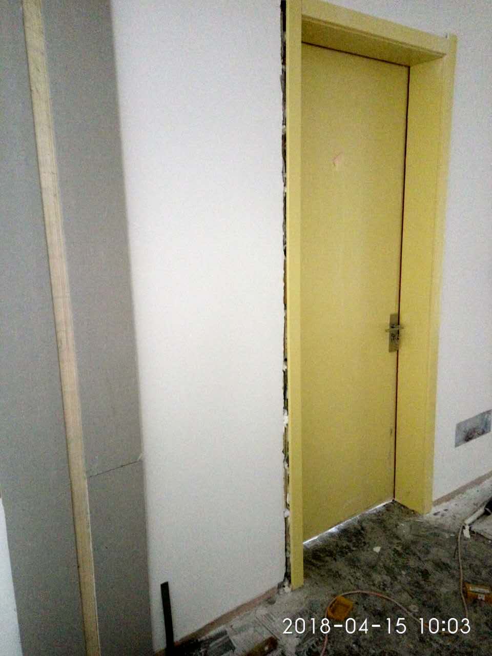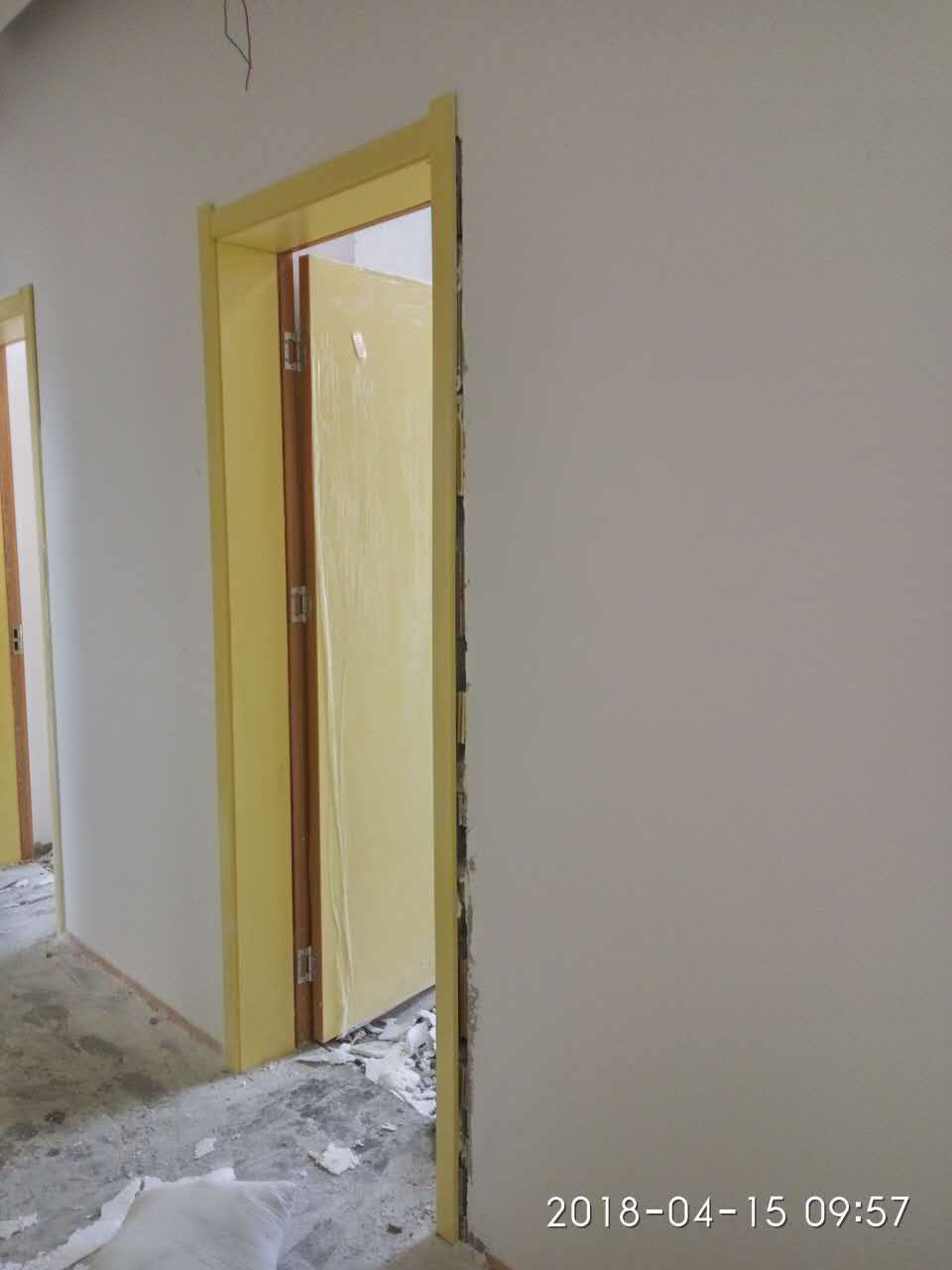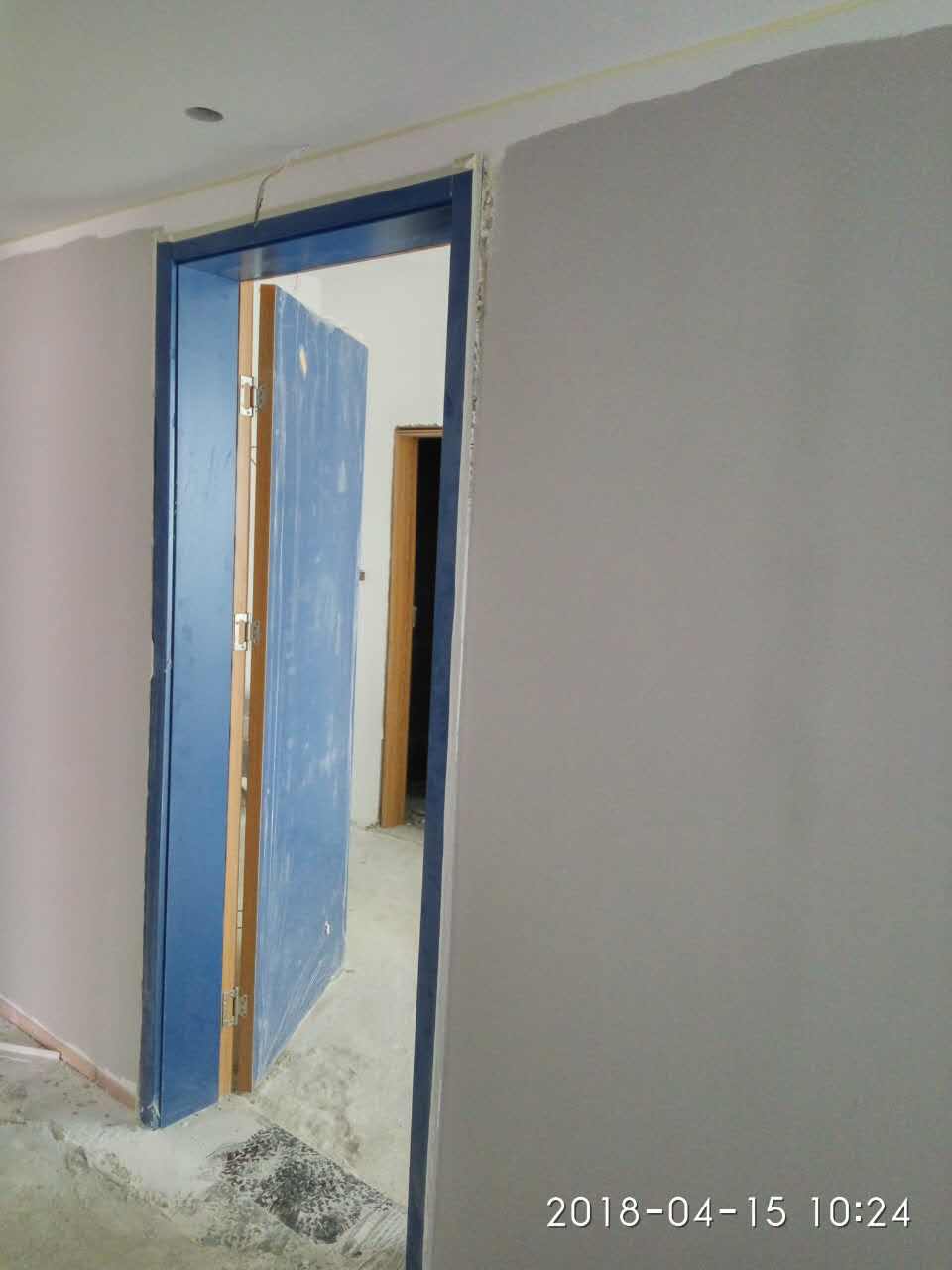 2018年4月15日榆次工地門洞尺寸大小不一,我們工人師傅正在邊裝門邊修繕門洞邊緣的不足。